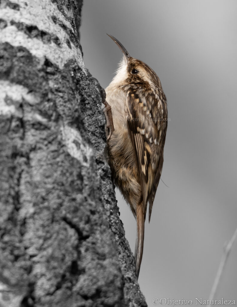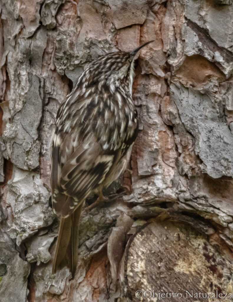 El agateador europeo se alimenta principalmente de invertebrados, como larvas de insectos, arañas y huevos de insectos que extrae de entre la corteza de los troncos con su largo pico curvado.